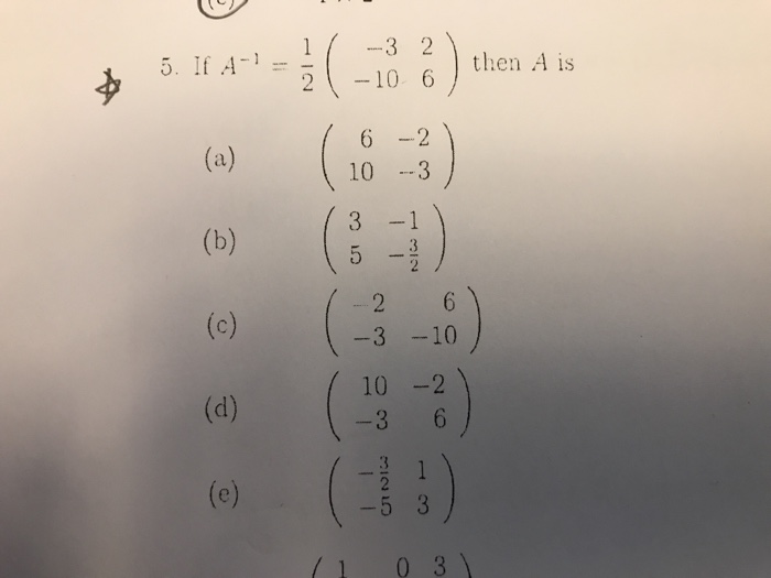 Solved If A 1 1 2 3 10 2 6 Then A Is 6 10 2 3 Chegg Com